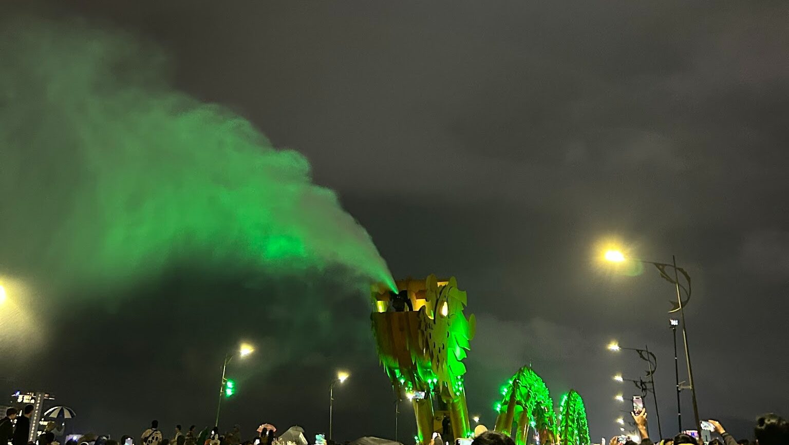 ドラゴンの顔があるところで開催されているんだけど、近すぎると水がかかるので注意!